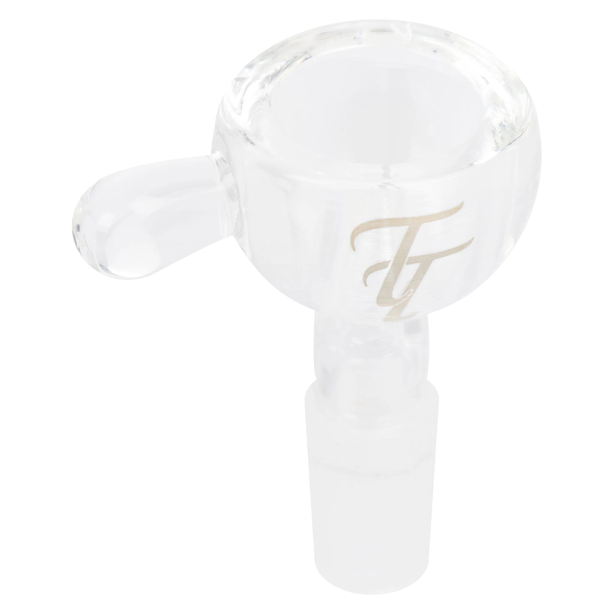 This clear Tech Tubes bowl is made of borosilicate glass and has a 14-mm or 19-mm male joint that will fit into any 14-mm or 19-mm female joint. It’s designed with a small handle for easy removal when hot. All sales are final.